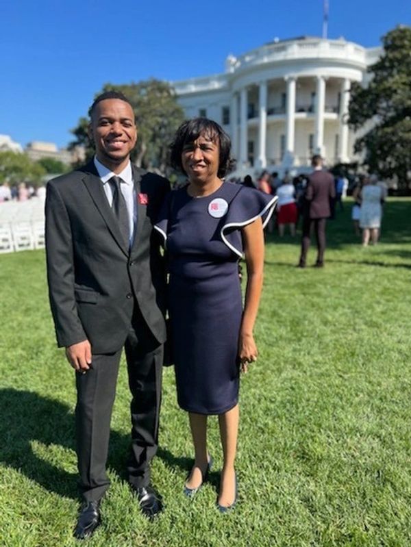 Rhonda Foster, Pitzer College ’82 and her son, Alec, were invited by President Biden to the White House on July 11 to celebrate the passage of the Bipartisan Safer Communities Act.